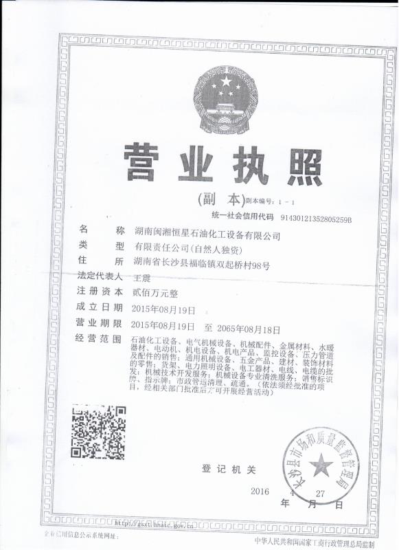 湖南闽湘恒星设备有限公司真诚的希望与石油石化各界交流、合作,竭尽所能提供优质的设备和服务以求共同发展!